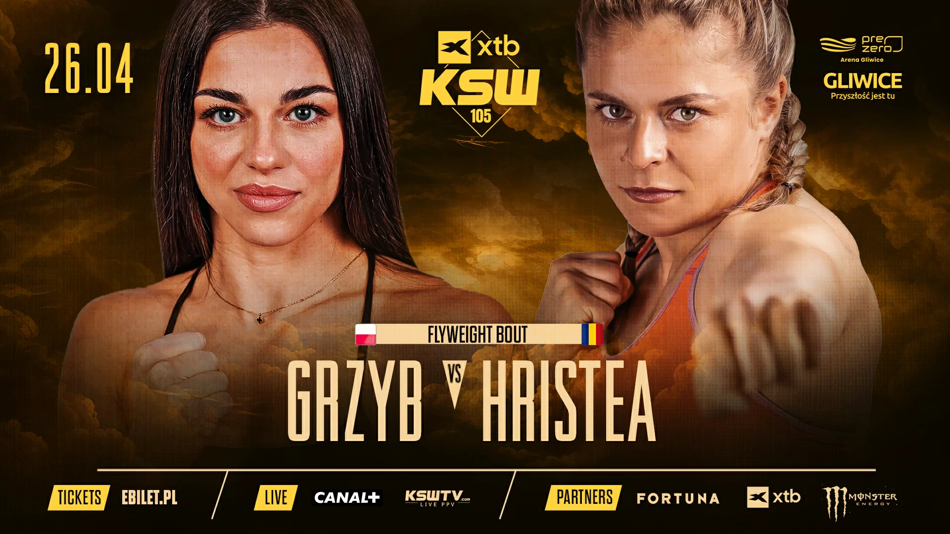 Już 26 kwietnia podczas gali XTB KSW 105 w Gliwicach w okrągłej klatce zadebiutuje Laura Grzyb (0-0), niepokonana pięściarska mistrzyni Europy. Przeciwniczką Polki będzie utalentowana zawodniczka z Rumunii, Gabriela Hristea (3-0). Starcie stoczone zostanie w limicie kategorii muszej, a dojdzie do niego w PreZero Arenie Gliwice.