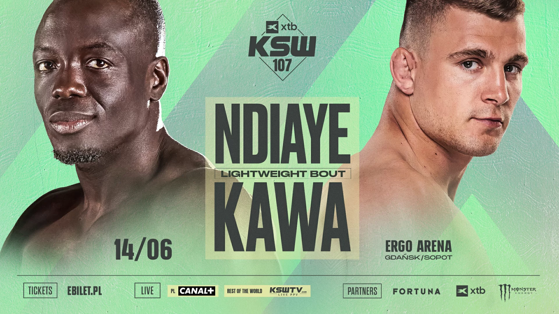 Podczas gali XTB KSW 107 do okrągłej klatki wejdzie ponownie El Hadji Ndiaye (6-3, 1 KO). Reprezentujący Francję zawodnik powita w organizacji utalentowanego Wojciecha Kawę (8-3, 6 KO). Do pojedynku w kategorii lekkiej dojdzie 14 czerwca w gdańsko-sopockiej ERGO ARENIE.