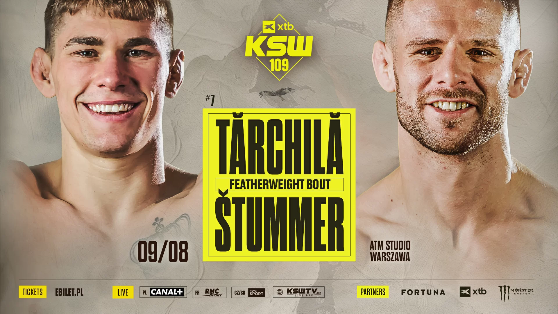 Dwaj utalentowani zawodnicy kategorii piórkowej staną w szranki podczas gali XTB KSW 109. Zaledwie 21-letni Daniel Tărchilă (8-3, 2 KO, 3 Sub), numerem siedem rankingu KSW, zetrze się z pochodzącym z Czech Josefem Štummerem (5-2, 1 KO, 2 Sub). Do konfrontacji dojdzie 9 sierpnia w warszawskim Studiu ATM.