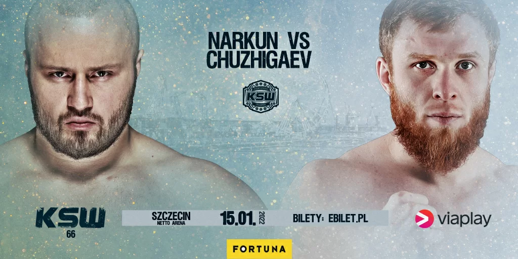 Najdłużej panujący mistrz organizacji KSW, Tomasz Narkun (18-4, 3 KO, 14 Sub), stanie do kolejnej obrony tytułu wagi półciężkiej już 15 stycznia na KSW 66 przed własną publicznością. Rywalem „Żyrafy" w szczecińskiej Netto Arenie będzie niepokonany w sześciu ostatnich pojedynkach, Ibragim Chuzhigaev (15-5, 8 KO, 2 Sub).
