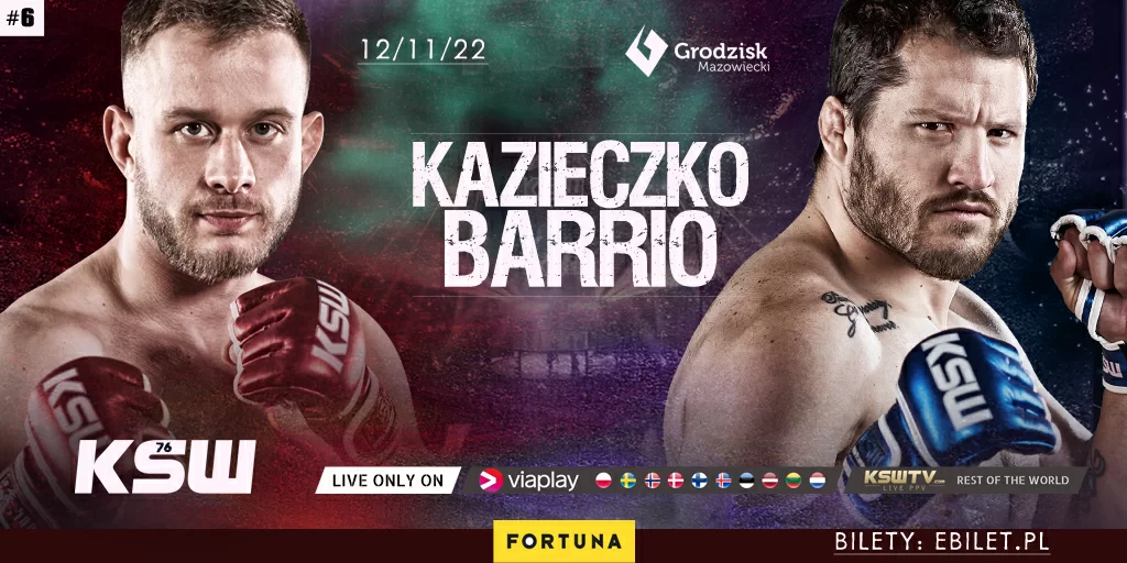 Podczas gali KSW 76 dojdzie do emocjonującego starcia w wadze lekkiej. 12 listopada w nowej hali widowiskowo-sportowej w Grodzisku Mazowieckim były pretendent do pasa kategorii lekkiej, Maciej Kazieczko (8-2, 5 KO), zmierzy się z będącym na fali trzech wygranych z rzędu, Francisco Barrio (10-2, 2 KO, 6 Sub).