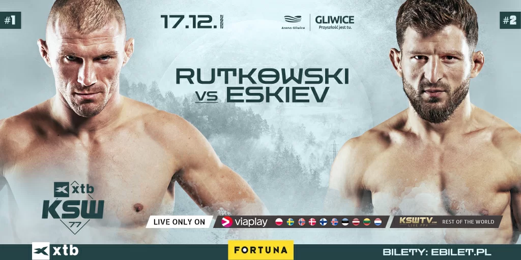 Do mocnego i niezwykle interesującego boju na szczycie wagi piórkowej dojdzie podczas gali XTB KSW 77. Numer jeden rankingu tej kategorii wagowej, Daniel Rutkowski (14-3 1NC, 7 KO, 1 Sub), zmierzy się z numerem dwa, Lom-Alim Eskievem (20-5 1NC, 9 KO, 3 Sub). Do pojedynku dojdzie 17 grudnia w Arenie Gliwice. #Gliwice