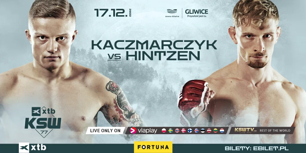 Starcie dwóch zawodników, którzy dają efektowne boje i często kończą je przed czasem zapowiada się niezwykle interesująco. Kaczmarczyk będzie walczył o powrót na drogę zwycięstw, a Hintzen o drugi tryumf z rzędu w KSW. Który jednak z nich wygra nadchodzące starcie? Przekonamy się już 17 grudnia w Arenie Gliwice.
