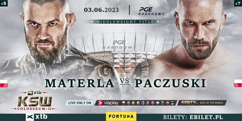 Podczas gali XTB KSW Colosseum 2 do okrągłej klatki powróci prawdziwa legenda MMA w Polsce, Michał Materla (32-9, 12 KO, 13 Sub), aby zmierzyć się w niej ze świetnym kickboxerem budującym coraz mocniejszą pozycję w świecie mieszanych sztuk walki, Radosławem Paczuskim (5-1, 4 KO). Do konfrontacji w czubie kategorii średniej dojdzie już 3 czerwca na PGE Narodowym.