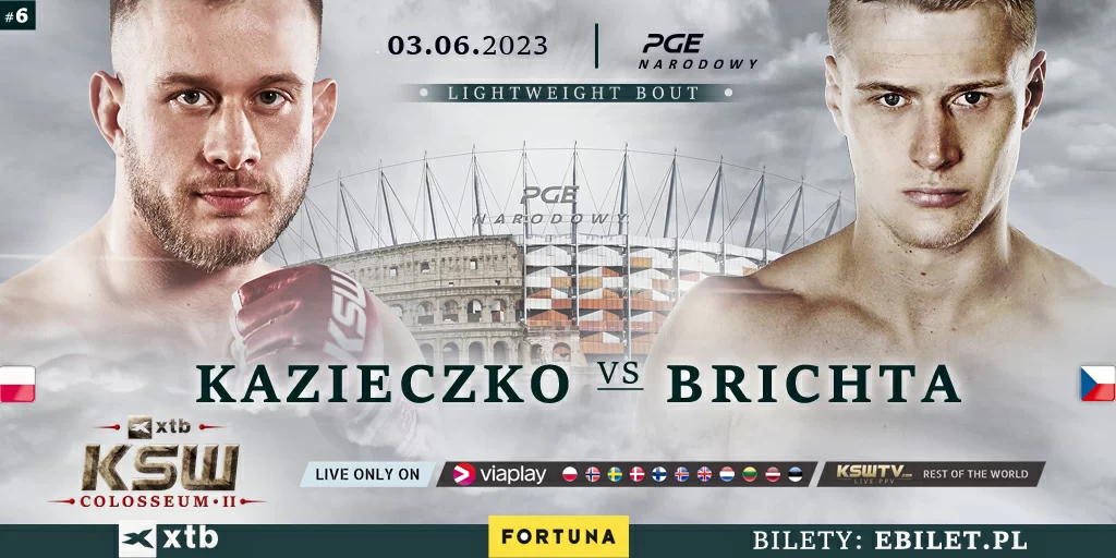 Fani KSW zobaczą 11 pojedynków na XTB KSW Colosseum 2! Walka Macieja Kazieczki (9-2, 6 KO) z Leo Brichtą (10-3 1NC, 5 KO, 4 Sub) nie odbędzie się podczas gali KSW 82 z powodu infekcji, której nabawił się Polak. Ostatecznie jednak starcie to zostało tylko nieco przesunięte w czasie i dodane do karty walk gali XTB KSW Colosseum 2, która odbędzie się 3 czerwca na PGE Narodowym.