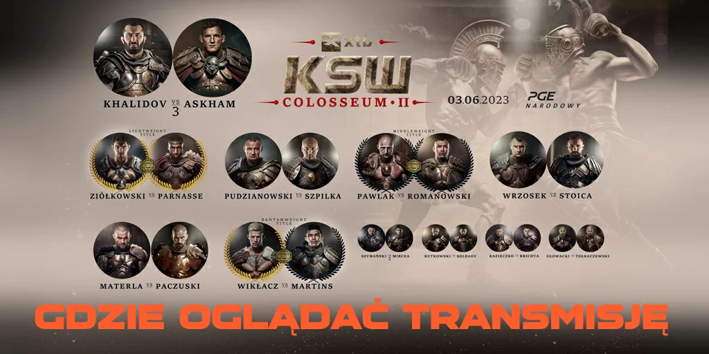 Już 3 czerwca na PGE Narodowym odbędzie się XTB KSW Colosseum 2, drugie największe wydarzenie w historii europejskiego MMA! Podczas gali odbędzie się aż jedenaście pojedynków i trzy walki mistrzowskie. Do okrągłej klatki wkroczą największe gwiazdy KSW: Mamed Khalidov, Mariusz Pudzianowski, Michał Materla, Artur Szpilka, Scott Askham, Marian Ziółkowski, Salahdine Parnasse i wielu innych. W trakcie niesamowitego eventu fani będą mogli zobaczyć nie tylko starcia na najwyższym sportowym poziomie, ale również fantastyczne widowisko uświetnione wspaniałą muzyką i efektami wizualnymi.