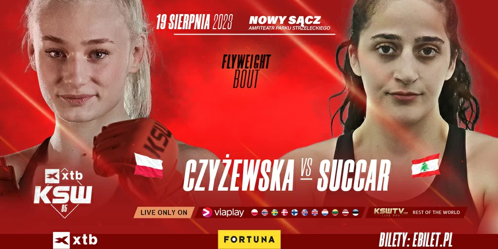 Starcie dwóch młodych zawodniczek będzie walką otwarcia gali XTB KSW 85 w Nowym Sączu. W pojedynku tym Wiktoria Czyżewska zmierzy się z debiutującą w KSW Sandrą Succar.