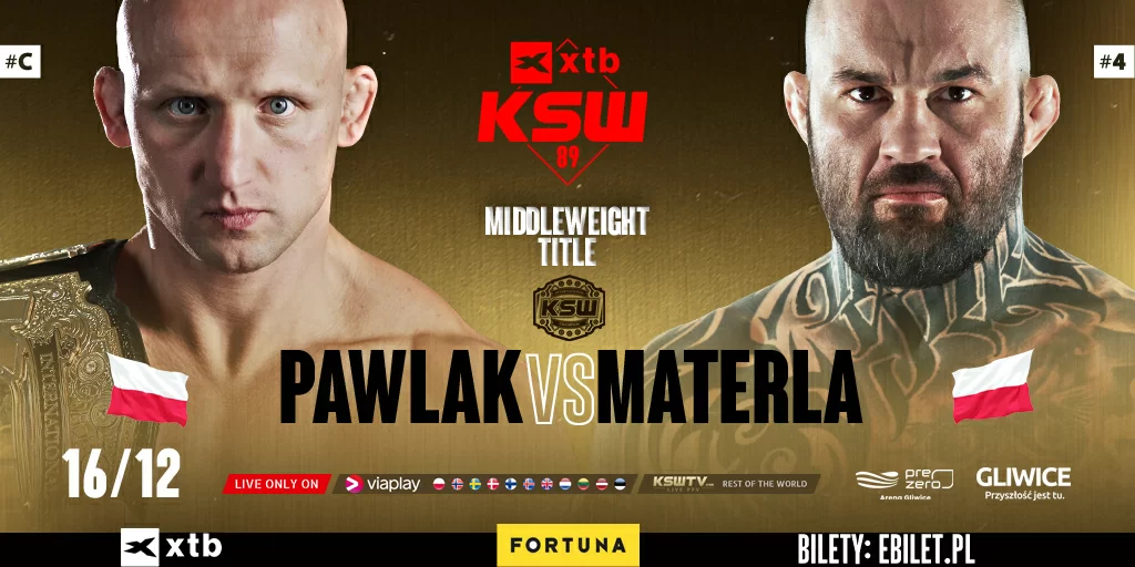 W drugiej walce mistrzowskiej gali XTB KSW 89 dojdzie do starcia o pas wagi średniej. W konfrontacji tej fenomenalny Paweł Pawlak (21-4-1 11 KO, 3 Sub) stanie do pierwszej obrony tytułu przeciwko prawdziwej legendzie MMA w Polsce i byłemu mistrzowi, Michałowi Materli (33-9, 13 KO, 13 Sub). Starcie odbędzie się 16 grudnia w PreZero Arenie Gliwice. #Gliwice