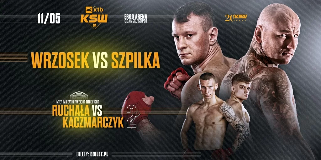 Już w maju organizacja KSW po raz dziesiąty w historii zawita do ERGO ARENY. Podczas XTB KSW 94 dojdzie do walki o tymczasowy pas wagi piórkowej pomiędzy Robertem Ruchałą (9-1, 1 KO, 3 Sub), numerem jeden rankingu tej kategorii wagowej, a Patrykiem Kaczmarczykiem (11-2, 3 KO, 2 Sub), zajmującym drugie miejsce w zestawieniu. Na granicy Gdańska i Sopotu fani zobaczą również długo wyczekiwaną konfrontację w królewskiej kategorii wagowej pomiędzy Arkadiuszem Wrzoskiem (4-0, 2 KO, 1 Sub) a Arturem Szpilką (2-0, 2 KO). Gala, początkowo planowana w nieco późniejszym terminie, została przesunięta i odbędzie się w sobotę 11 maja.