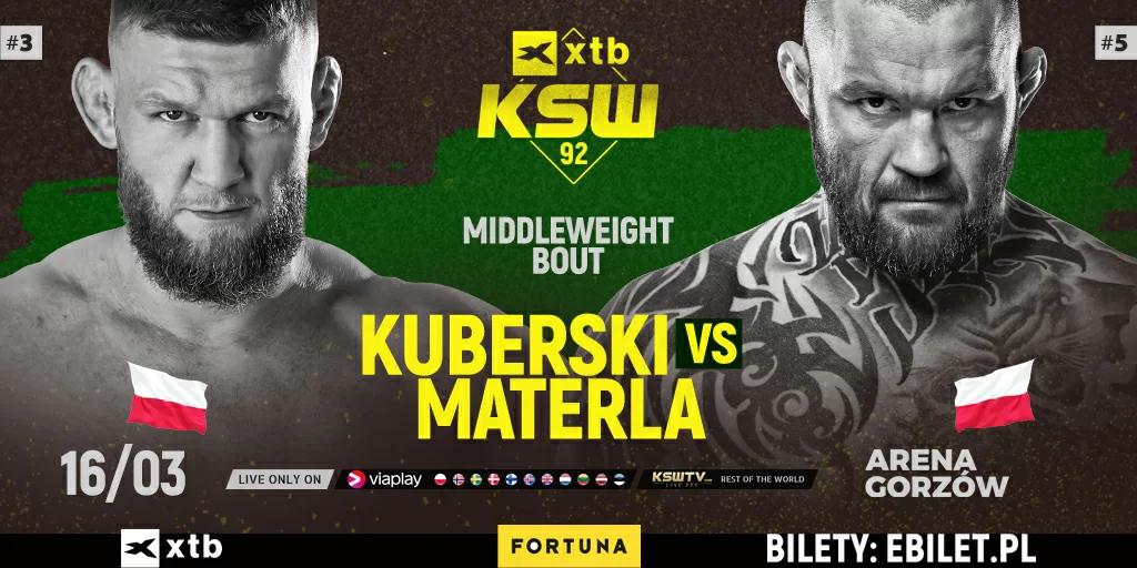 W drugiej walce wieczoru gali XTB KSW 92 dojdzie do pojedynku czołowych zawodników wagi średniej. Piotr Kuberski, numer trzy rankingu tej wagi, zmierzy się z byłym mistrzem, a dziś numerem pięć, Michałem Materlą.