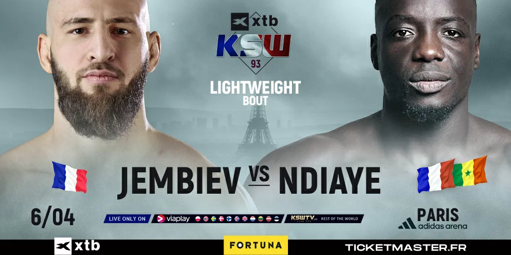Podczas gali XTB KSW 93 dojdzie do starcia dwóch reprezentujących Francję zawodników. W konfrontacji tej rywalem utalentowanego Ramzana Jembieva (5-2, 3 KO, 1 Sub) będzie debiutujący w okrągłej klatce El Hadji Ndiaye (5-2, 1 KO). Pojedynek w kategorii lekkiej odbędzie się 6 kwietnia w hali Adidas Arena w Paryżu.