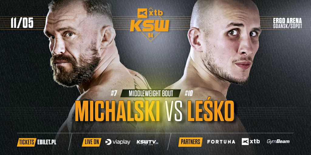 Podczas gali XTB KSW 94 dojdzie do starcia dwóch efektownie walczących zawodników wagi średniej. W pojedynku tym Bartosz Leśko (13-4-2, 2 KO, 7 Sub), specjalista od poddawania rywali, zmierzy się z Michałem Michalskim (11-5, 6 KO, 1 Sub), który najczęściej nokautuje przeciwników. Do walki dojdzie 11 maja w ERGO ARENIE.