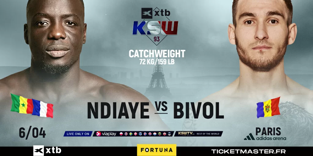 Podczas gali XTB KSW 93 dojdzie do starcia debiutujących w okrągłej klatce zawodników. W pojedynku tym reprezentujący Francję El Hadji Ndiaye (5-2, 1 KO) zmierzy się z niepokonanym Nicolae Bivolem (3-0, 1 KO, 1 Sub). Do pojedynku w umownym limicie wagowym do 72 kilogramów dojdzie 6 kwietnia w hali Adidas Arena w Paryżu. El Hadji Ndiayem miał początkowo zmierzyć się z Ramzanem Jembievem, ale ten musiał wycofać się z pojedynku z powodu kontuzji barku.