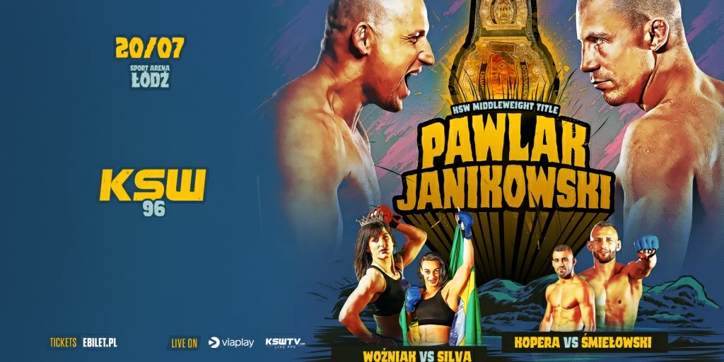 Już w lipcu organizacja KSW ponownie zawita do Łodzi. W walce wieczoru gali KSW 96 dojdzie do wielkiego rewanżu i jednocześnie walki mistrzowskiej w wadze średniej. W starciu tym Paweł Pawlak (23-4-1, 11 KO, 3 Sub), czempion tej kategorii wagowej, zmierzy się z Damianem Janikowskim (10-5, 5 KO, 1 Sub), numerem trzy rankingu. Na karcie walk nie zabraknie też powracającego do okrągłej klatki lokalnego bohatera, Bartłomieja Kopery (13-7, 8 Sub), który stanie do rywalizacji z utalentowanym Dawidem Śmiełowskim (10-1, 8 KO, 2 Sub). W starciu pań łódzkiego wydarzenia niepokonana w KSW Maria Silva (10-1, 3 KO, 4 Sub) zetrze się z mającą za sobą świetny debiut w okrągłej klatce Eweliną Woźniak (8-2, 2 KO, 4 Sub). Będzie to rewanż za starcie z roku 2022. Gala KSW 96 odbędzie się 20 lipca w Sport Arena.