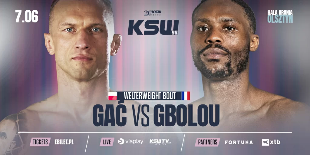 W pojedynku otwierającym galę KSW 95 do okrągłej klatki powróci efektownie walczący Jacek Gać (2-1, 2 KO) i przywita debiutującego w niej Morgana Gbolou (4-2, 1 KO, 2 Sub). Do pojedynku w kategorii półśredniej dojdzie 7 czerwca w hali Urania w Olsztynie.