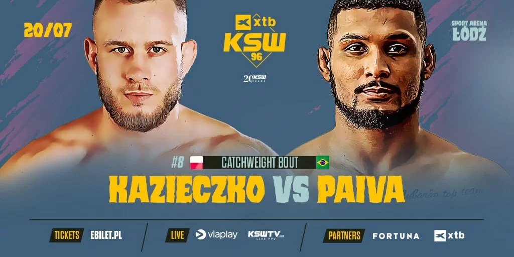 Podczas zbliżającej się gali XTB KSW 96 dojdzie starcia w limicie umownym do 72 kilogramów, w którym były pretendent do pasa mistrzowskiego, Maciej Kazieczko (9-3, 6 KO), zmierzy się z debiutującym w KSW Welissonem Paivą (10-4-1, 7 KO). Do walki dojdzie 20 lipca w łódzkiej hali Sport Arena. Początkowo rywalem Polaka miał być Ahmed Abdulkadirov, ale musiał wycofać się z pojedynku z powodów zdrowotnych.