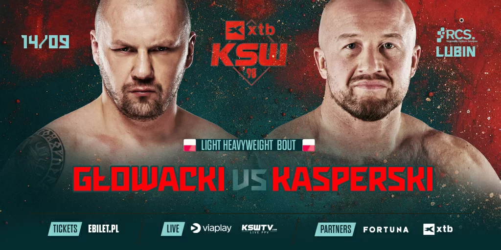 Gala XTB KSW 98 przyniesie z sobą świetny pojedynek w wadze półciężkiej dwóch byłych mistrzów świata sportów uderzanych. W boju tym Krzysztof Głowacki (1-0, 1 KO), były czempion organizacji WBO, zmierzy się z wielokrotnym mistrzem Polski w kickboxingu, Dawidem Kasperskim (1-0). Dla obu zawodników będzie to druga walka na zasadach MMA, a dojdzie do niej 14 września w hali widowiskowo-sportowej RCS w Lubinie. Panowie mieli się początkowo zmierzyć w czerwcu podczas gali w Olsztynie, ale Krzysztof Głowacki doznał wówczas kontuzji i zdecydowano o przeniesieniu starcia.