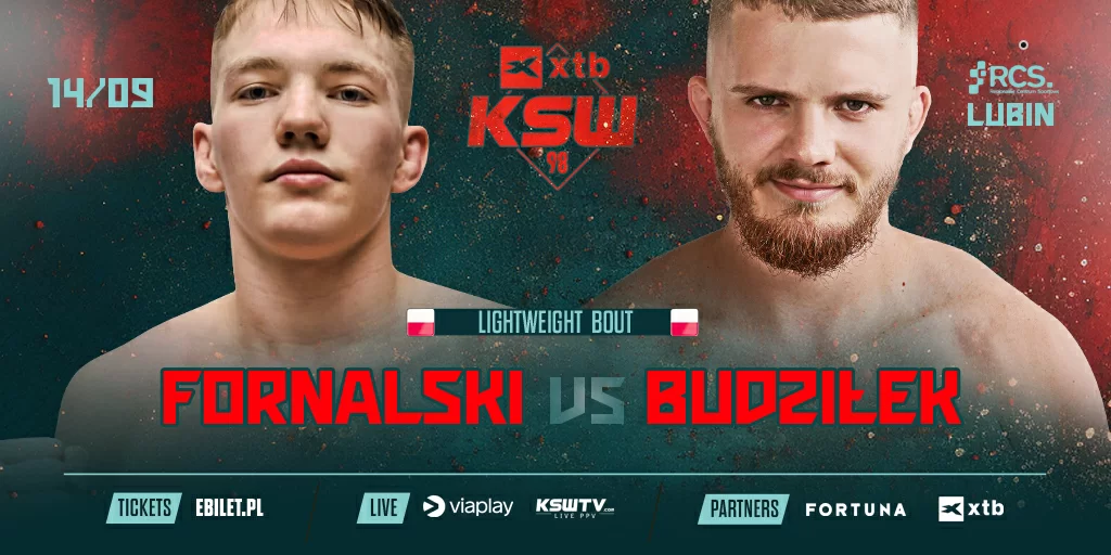 Jednym ze starć gali XTB KSW 98 w Lubinie będzie pojedynek zawodników będących na początku swojej zawodowej drogi przez świat MMA. W konfrontacji tej Kacper Fornalski (0-0) zmierzy się z Aleksandrem Budziłkiem (1-0, 1 Sub). Dla obu zawodników będzie to debiut w KSW. Do pojedynku w kategorii lekkiej dojdzie 14 września w hali widowiskowo-sportowej RCS.