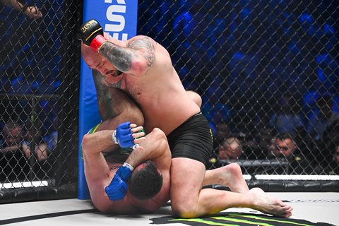 w MMA dla organizacji KSW. Ostatni raz rywalizował w czerwcu, kiedy to zmierzył się z Arkadiuszem Wrzoskiem. Polak błyskawicznie ruszył do ataków kickboxerskich i zaczął wywierać presję. De Fries nie czekał długo z odpowiedzią i szybko przeniósł pojedynek na matę. Pretendentowi udało się wstać, ale Anglik ponownie go obalił i tym razem nie pozwolił już mu wrócić do stójki. Mistrz systematycznie zmieniał pozycje, atakował ciosami głowę Wrzoska, ale w końcu złapał rękę Polaka w technikę kończącą i zmusił go do poddania się.