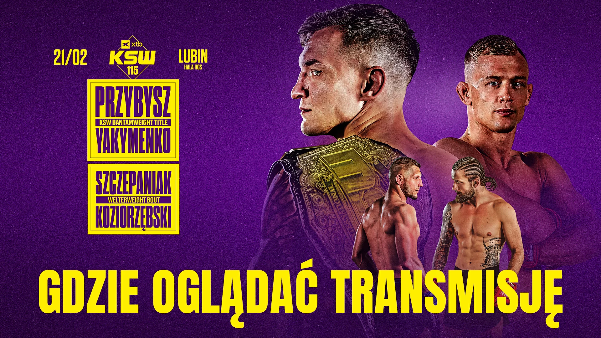 Już w sobotę 21 lutego w Lubinie odbędzie się gala XTB KSW 115. W walce wieczoru dojdzie do pojedynku na szczycie wagi koguciej. W starciu tym rywalem dającego emocjonujące konfrontacje czempiona, Sebastiana Przybysza (14-4-1, 5 KO, 5 Sub), będzie utalentowany numer dwa rankingu wagi koguciej, Vitalii Yakymenko (10-2, 4 KO, 4 Sub).